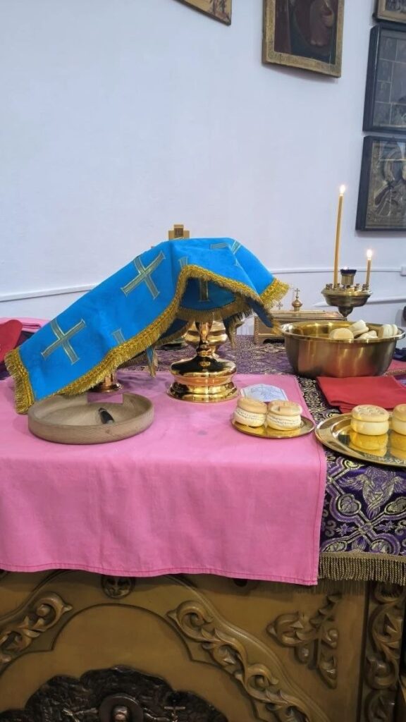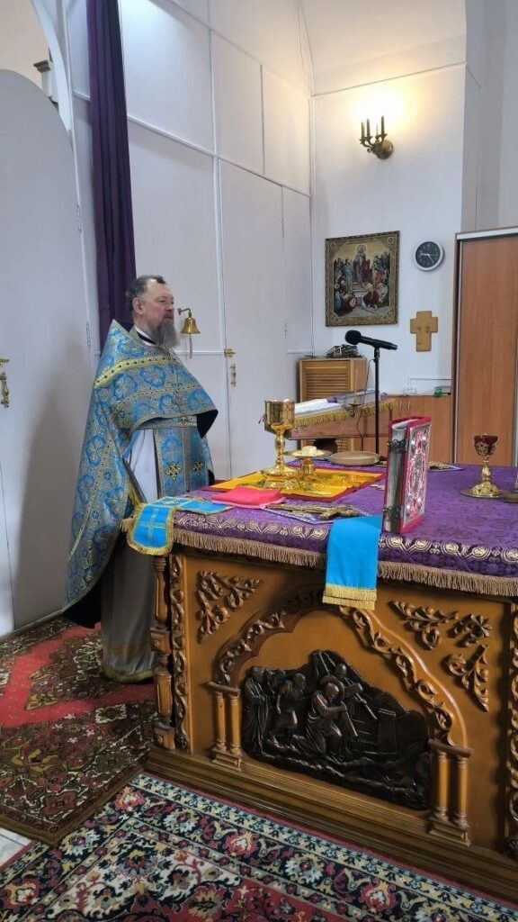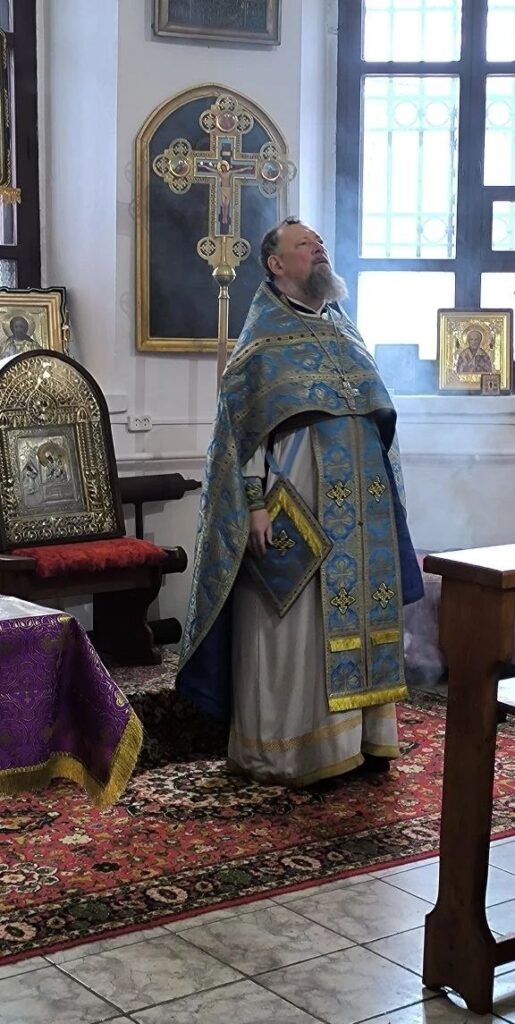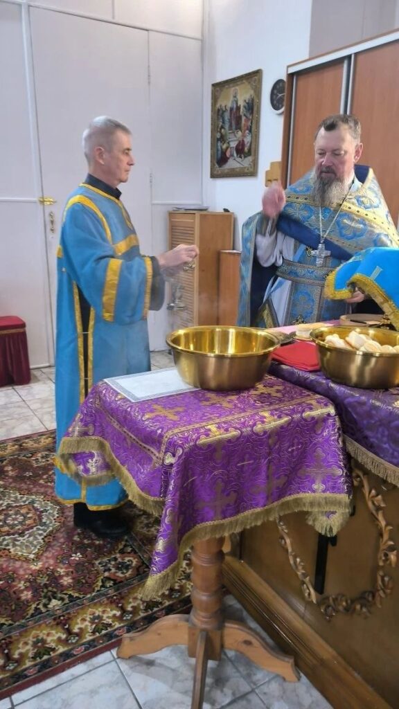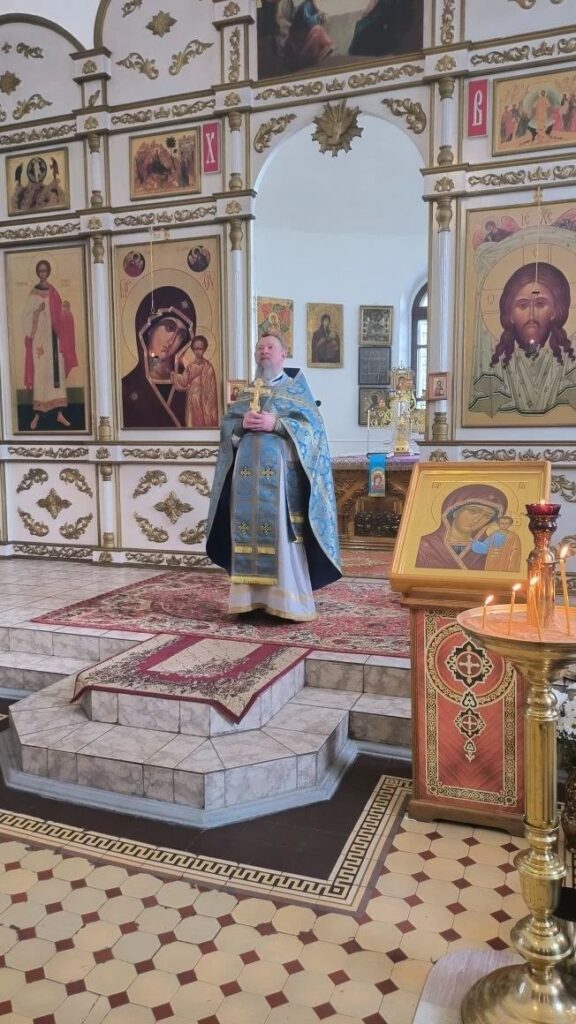Праздник Похвалы Пресвятой Богородицы установлен в память чудесного избавления Константинополя от нашествия врагов в 626 году. Божественную литургию возглавил настоятель храма, протоиерей Владислав Москаленко, в сослужении духовенства прихода. По завершении Литургии отец настоятель обратился к молящимся с проповедью. Тропарь праздника, глас 8: